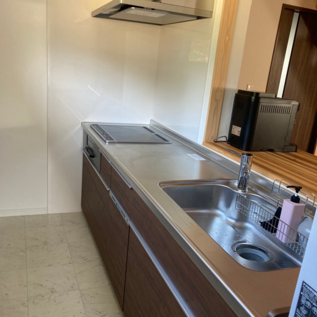 広いキッチンとカウンターテーブルがあり、調理をしながら会話を楽しめるつくりです。